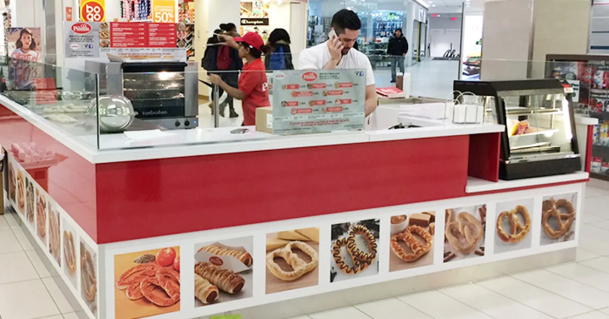 Mr Pretzel was started in 1994 in Puerto Rico. It currently has about 200 kiosks worldwide, with a vast majority of them located in malls.