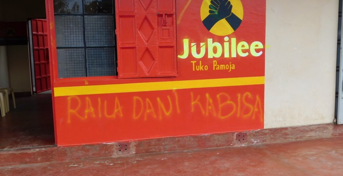 The irate residents brought business to a standstill in Ol Kalou town for the better part of the day after they lit bonfires outside Jubilee Party headquarters in Nyandarua along Gilgil-Nyahururu road, defacing it by painting it with ODM colors.