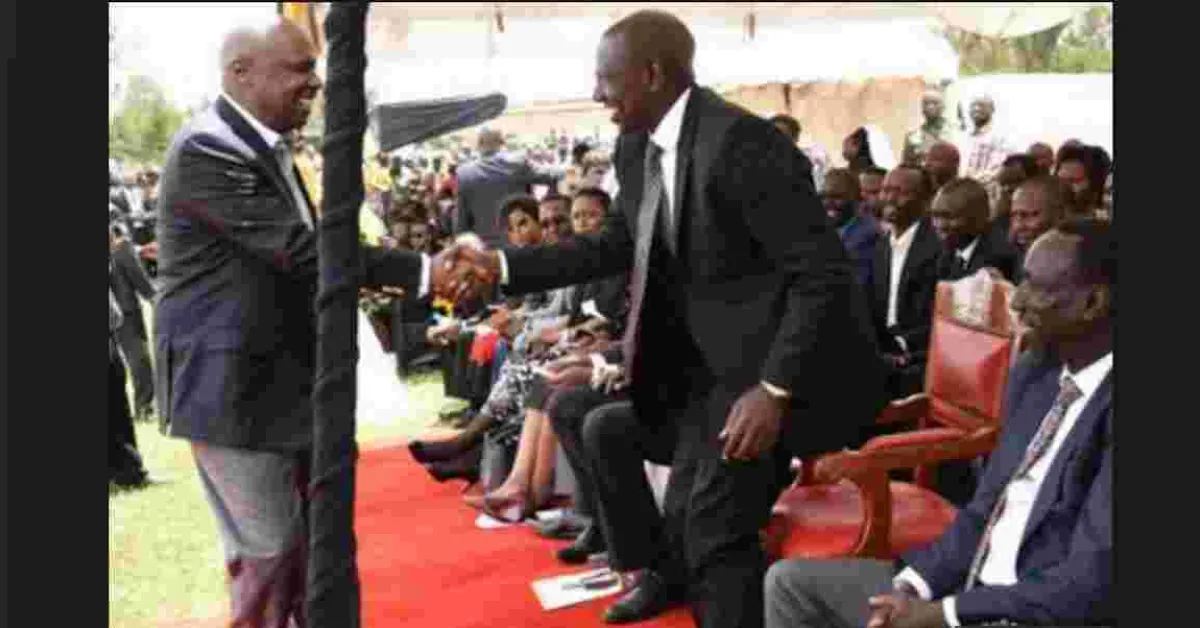 Moi proceeded to shake Ruto's hand when he arrived at the funeral, but pulled a dramatic stunt by leaving the VIP tent to go sit with mourners.