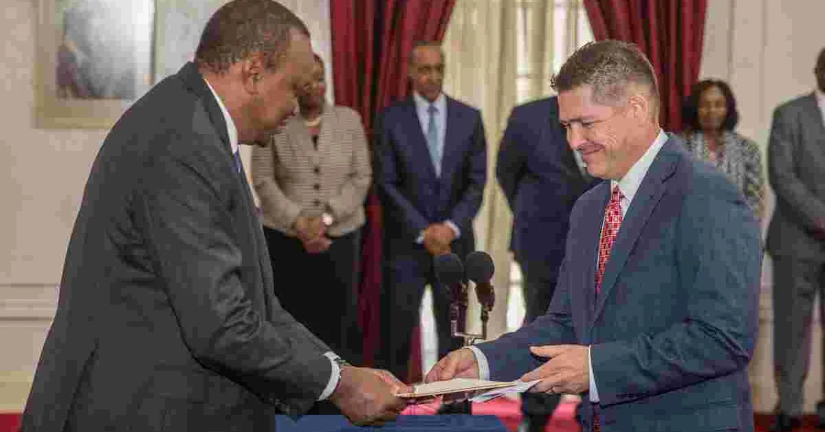 McCarter has on Tuesday morning presented his credentials to President Kenyatta at State House, Nairobi.