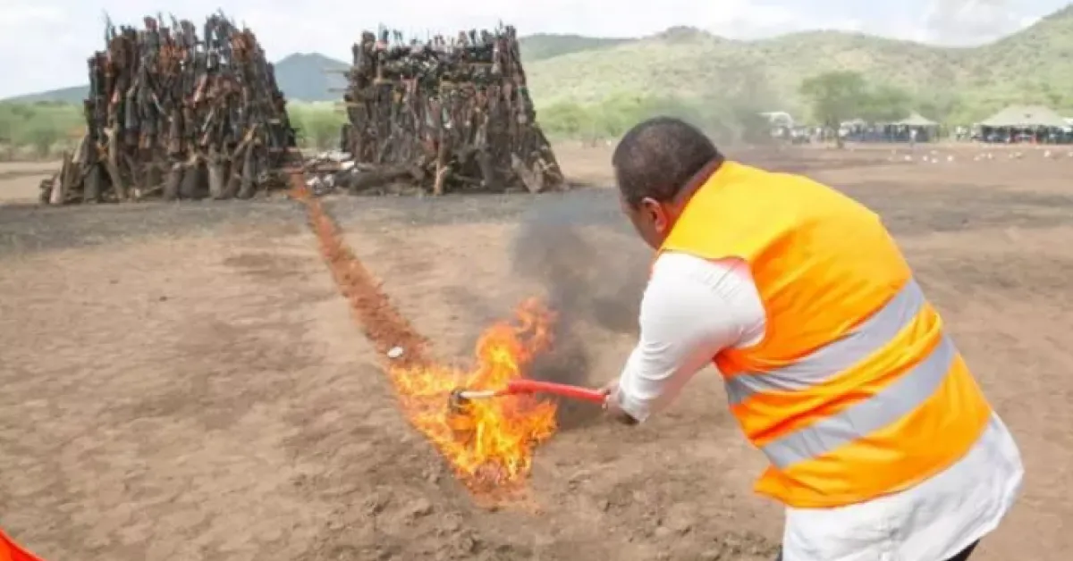 The arms were destroyed by burning at the General Service Unit (GSU) Magadi Field Training Campus in Kajiado County.
