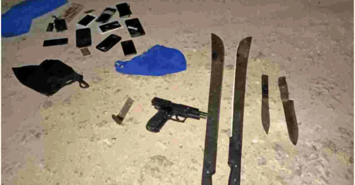 The gangsters were armed with crude weapons, including knives, machetes, and an imitation of a firearm.
