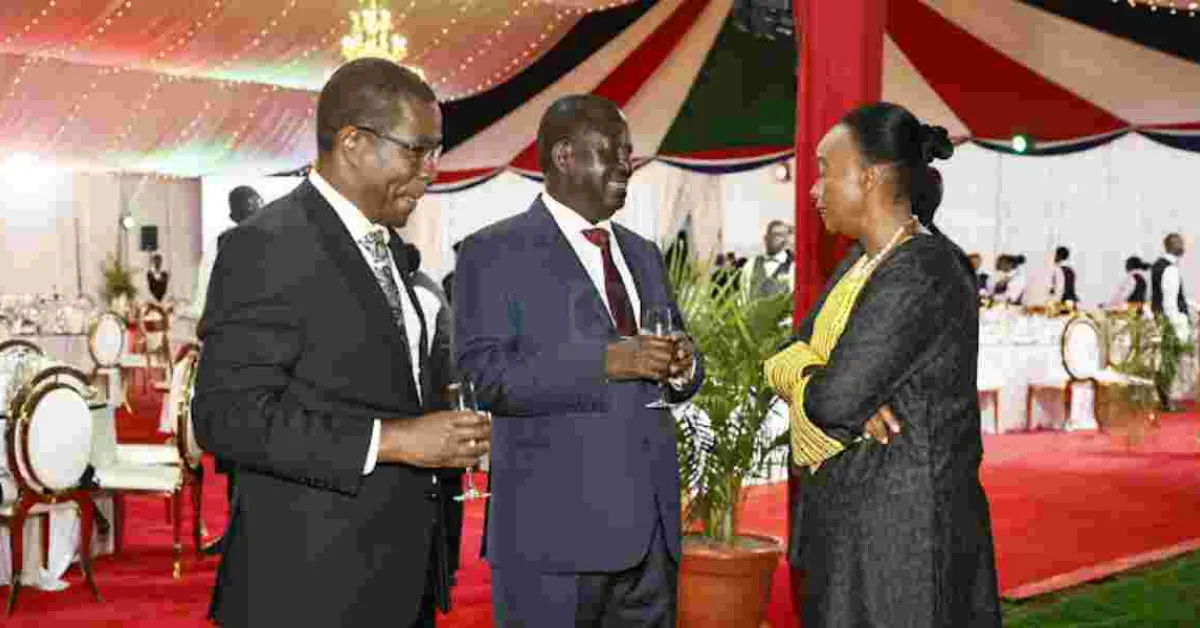 At the banquet, Raila mingled with leaders and politicians from diverse political affiliations including Cabinet Secretaries. Notable individuals seen interacting with Raila at State House included CS Alfred Mutua, UDA SG Cleophas Malala, and President William Ruto's security Advisor Monica Juma. This marks Raila's first appearance at the State House since his loss to Ruto in the 2022 elections.