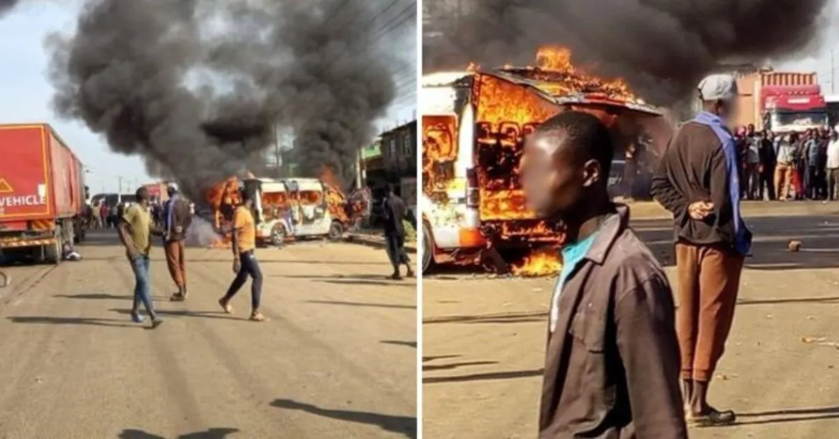 According to initial reports, the 14-seater matatu lost control and struck the boda boda rider, who died at the scene. The incident quickly escalated when fellow boda boda operators confronted the matatu driver, accusing him of reckless driving. The confrontation turned violent, and the vehicle was set on fire by an angry mob.
